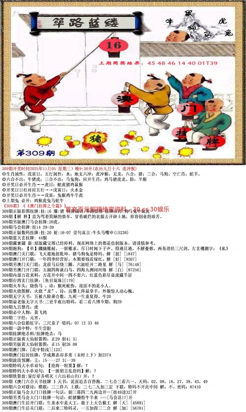 309期今期猴鼠牛出特,能均汉祚三分业开鼠06